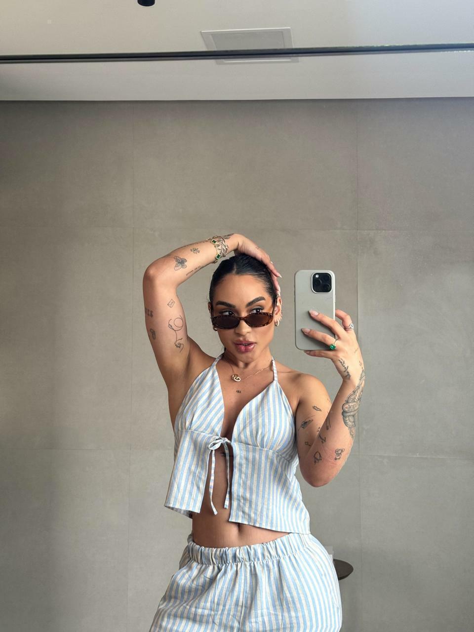 O design do Conjunto Bahamas é fresco, elegante e estiloso, tornando-o perfeito para diversas ocasiões, desde um passeio casual até um evento mais formal. Combine com acessórios sofisticados, como uma bolsa de palha e sandálias de tiras, e esteja pronta para brilhar onde quer que vá.